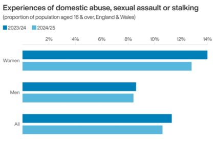 About one in 10 people aged 16 and over in England and Wales were victims of domestic abuse, sexual assault or stalking in the year to March, estimates suggest.. Read More...